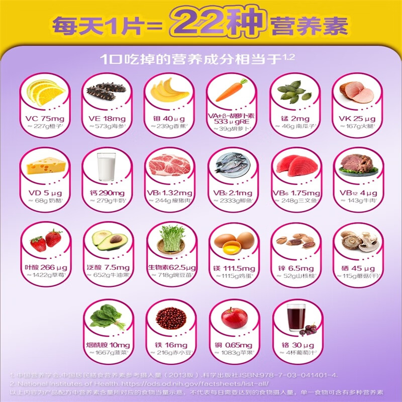 善存女士成人多种复合维生素b族矿物质 锌镁片 维生素C 维生素e 含叶酸维c vc 维bed 小紫瓶80片