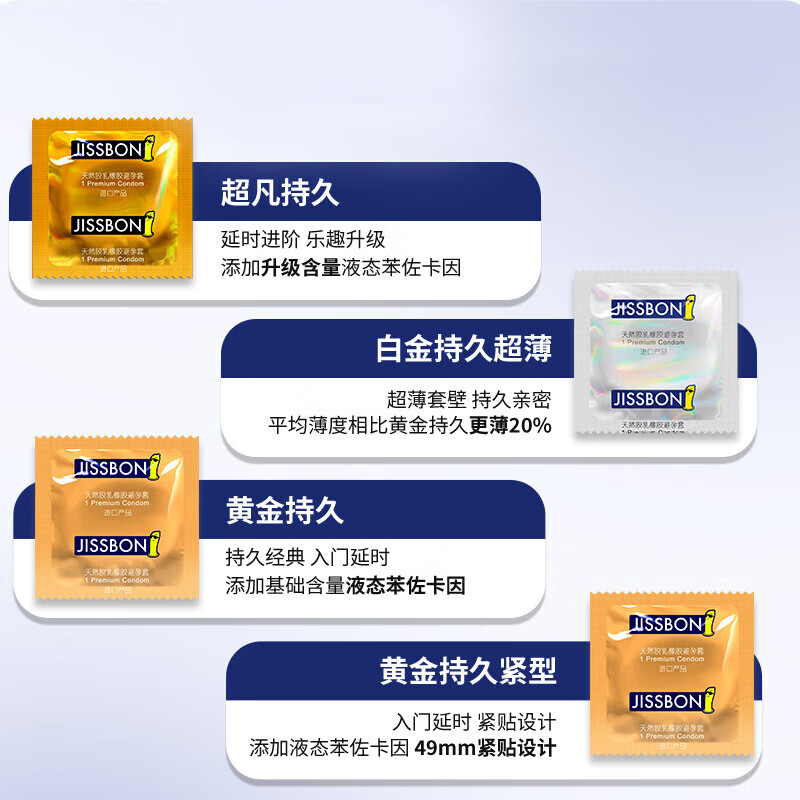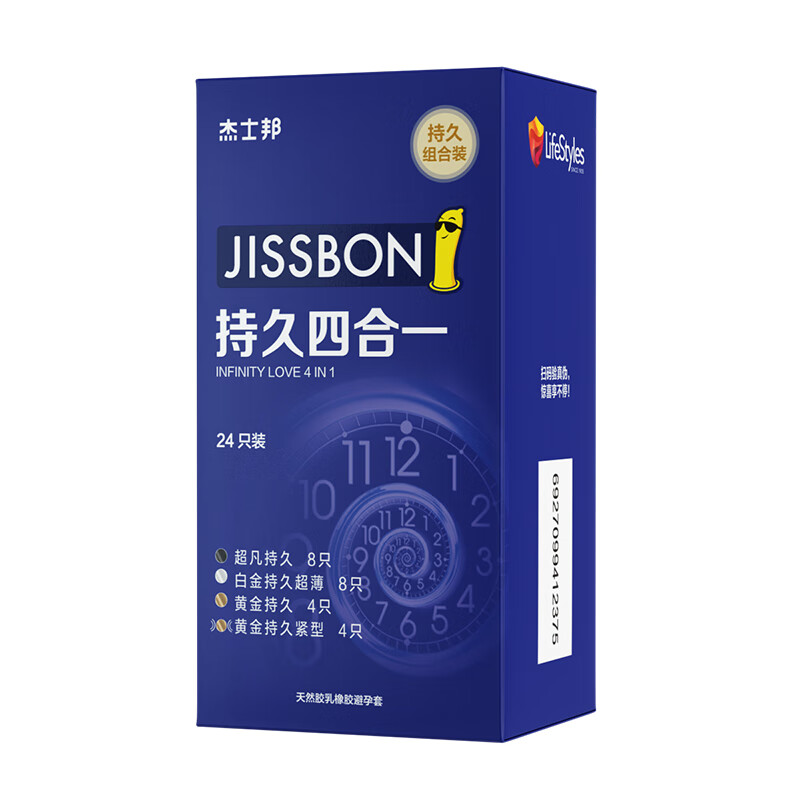 杰士邦 避孕套持久 男专用持久安全套 延时避孕套四合一24只 超凡黄金白金超薄 情趣大颗粒套套 成人计生用品