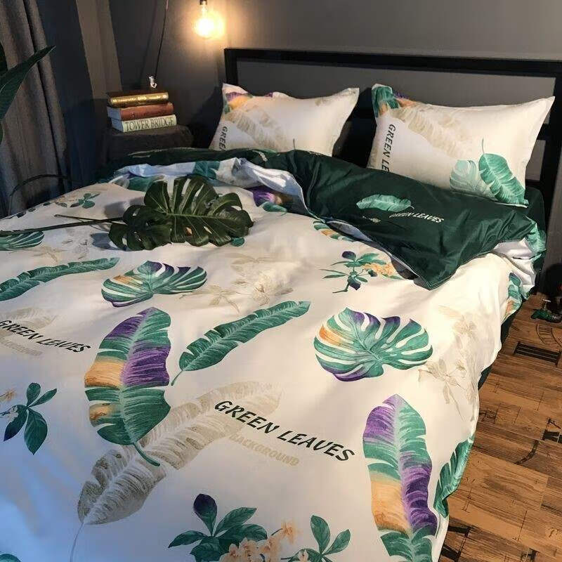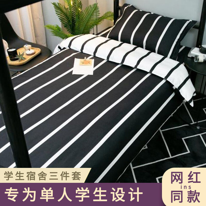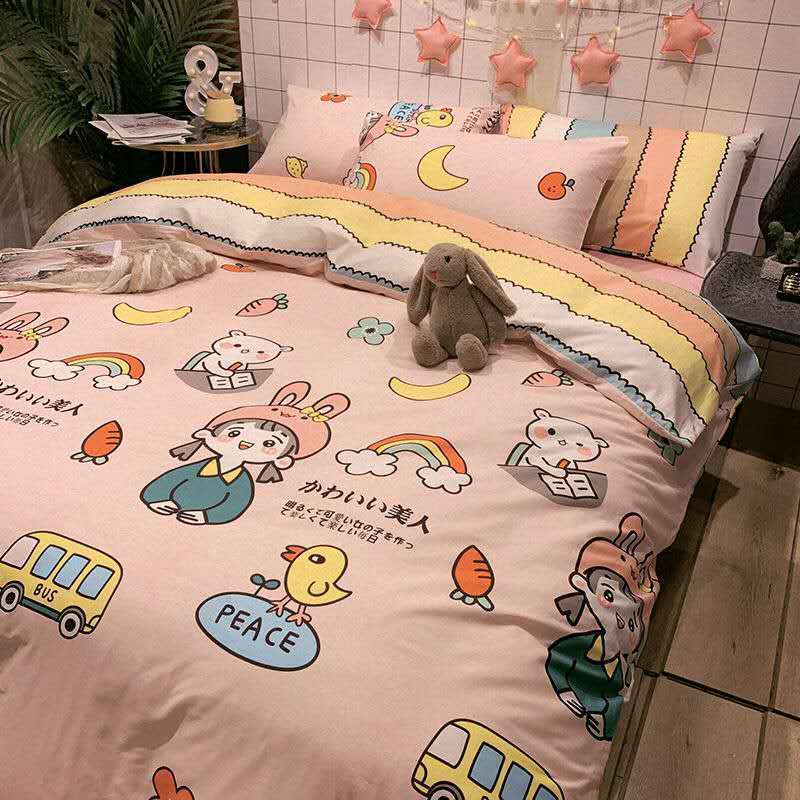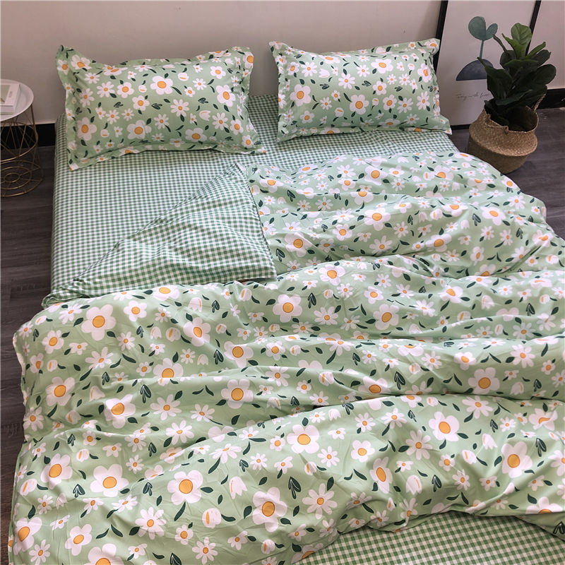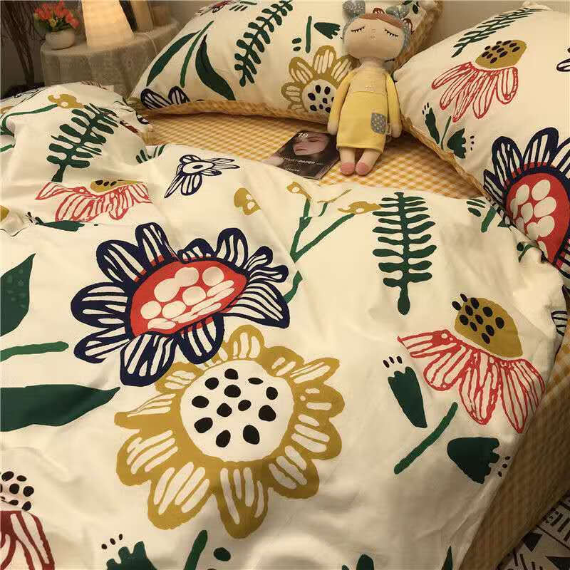 网红款水洗棉床单被套单人床上用品学生被单宿舍被子三件套 芒种-蓝 1.5m床(三件套)单人床