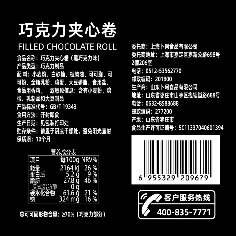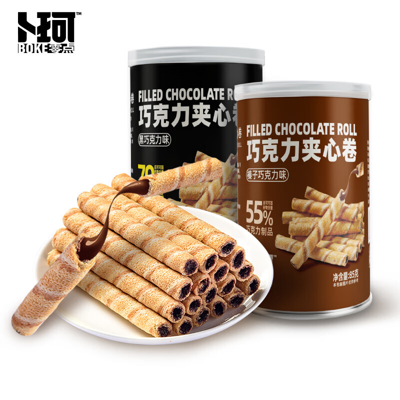 卜珂卜珂黑巧克力夹心卷饼干罐装夹心蛋卷巧克力蛋卷网红零食送女友 (2口味各2罐) 85g 4袋