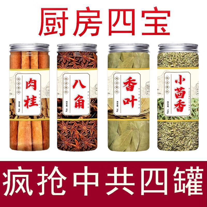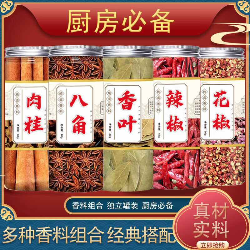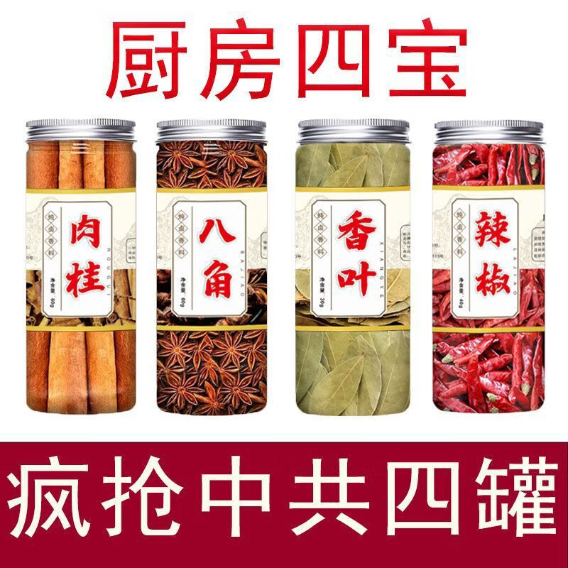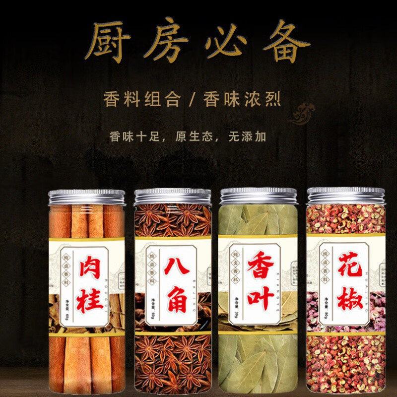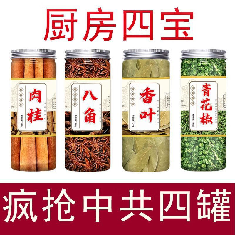 君臣乐香料组合套装香料调味品大桂皮肉桂八角香叶花椒辣椒小茴瓶罐装 花椒+八角+肉桂+香叶