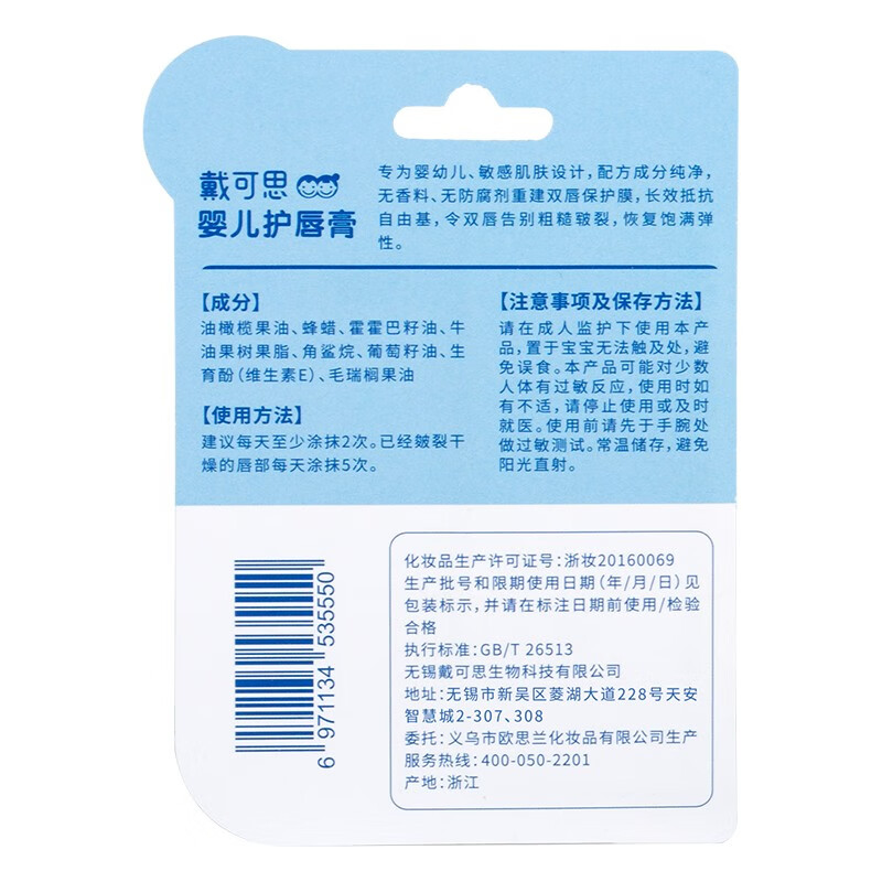 戴·可·思(Dexter)婴儿童唇膏润护宝宝护唇用品滋润护唇防干裂 1支装/3.6g