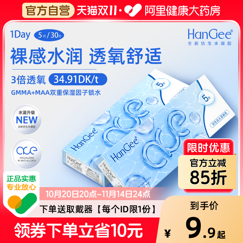 【自营】HanGee隐形眼镜ace小蓝片日抛30片小直径次抛正品旗舰店